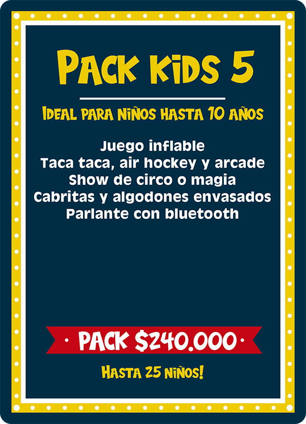 Los Planes Kids están diseñados para niños de 7 a 10 años, con actividades dinámicas, entretenidas y llenas de energía. Celebraciones pensadas para fomentar la participación, la diversión y la interacción, creando momentos inolvidables junto a sus amigos y familiares.